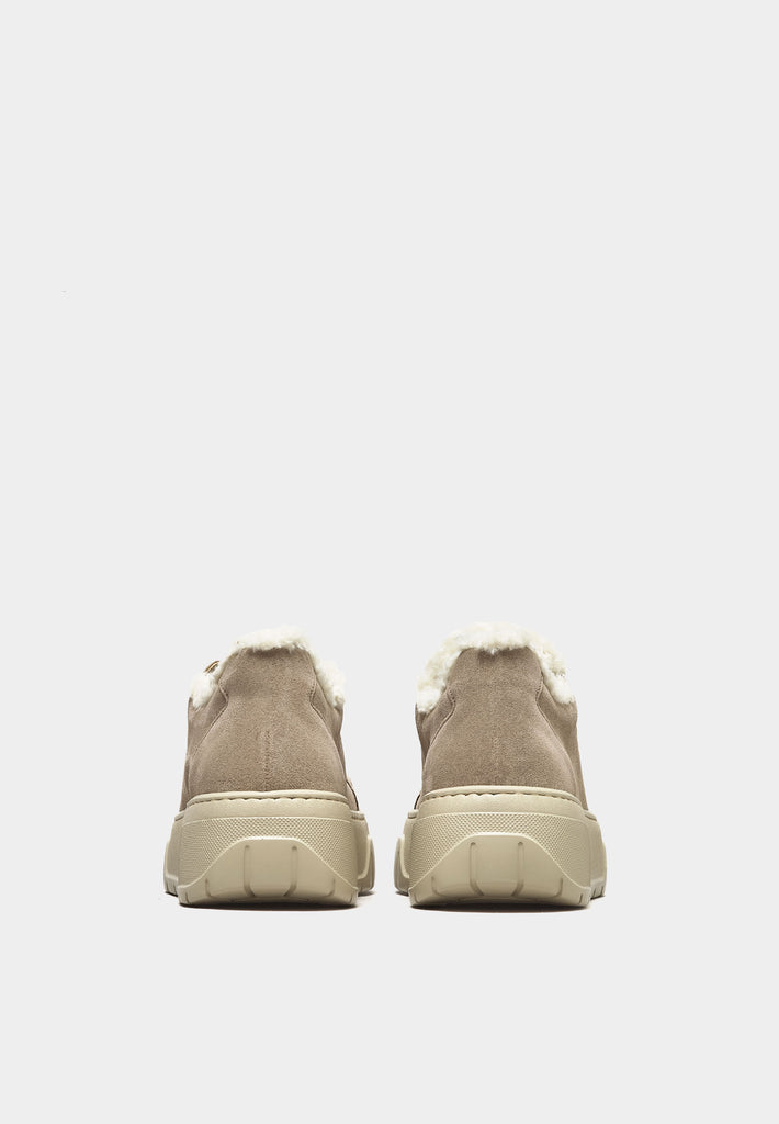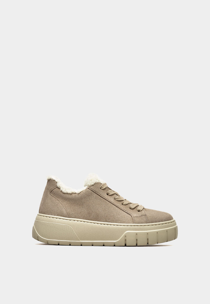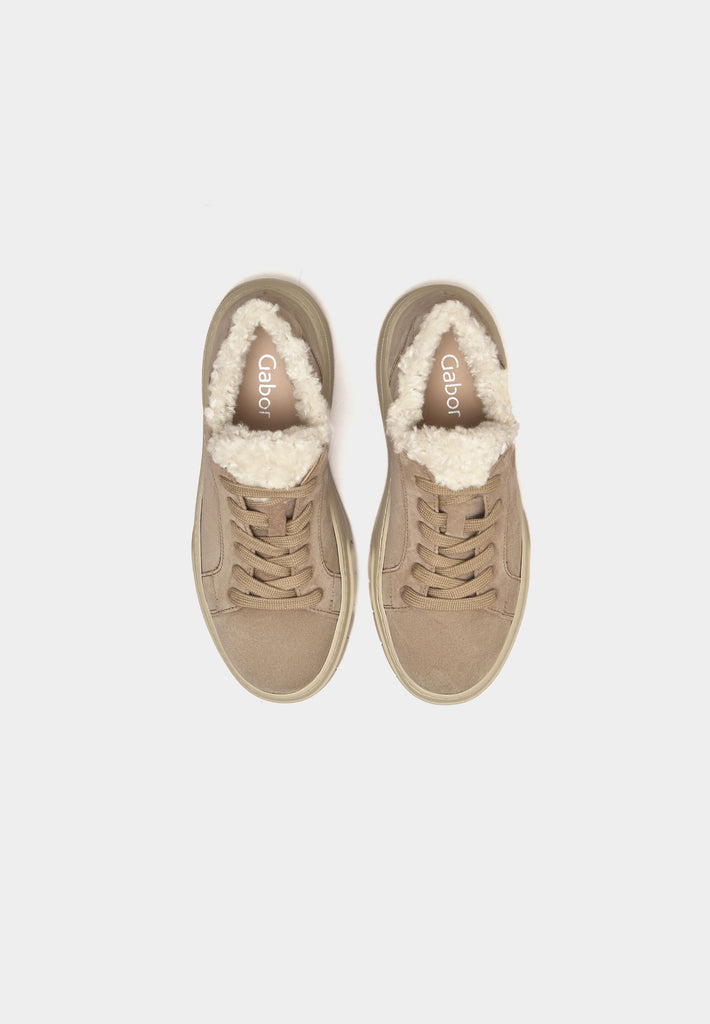 Experience the epitome of style and comfort with the 53-221 by Gabor. These chunky trainers with decorative fleece trim aren't just footwear, they're your new fashion statement! Crafted in a sophisticated light taupe faux suede, each step you take will blend effortless chic with functional design. The lace-up style ensures a snug fit, while the removable insole accommodates your personal comfort preferences—because why shouldn't every shoe feel tailor-made for you? Featuring a chunky, tone-matched rubber sole, these trainers are as much about stability as they are about making an impression. Picture yourself pairing these with your favourite trousers or flowy dresses and watch as your fashion-forward ensemble turns heads. Perfect for the cultured woman who enjoys life’s finer moments, whether she’s strolling through the park with her four-legged friend or enjoying a weekend getaway. Enjoy the unique sophistication that only Gabor can provide, with a wink of playful elegance thrown in for good measure.