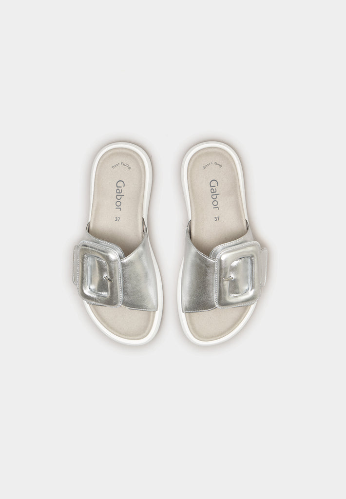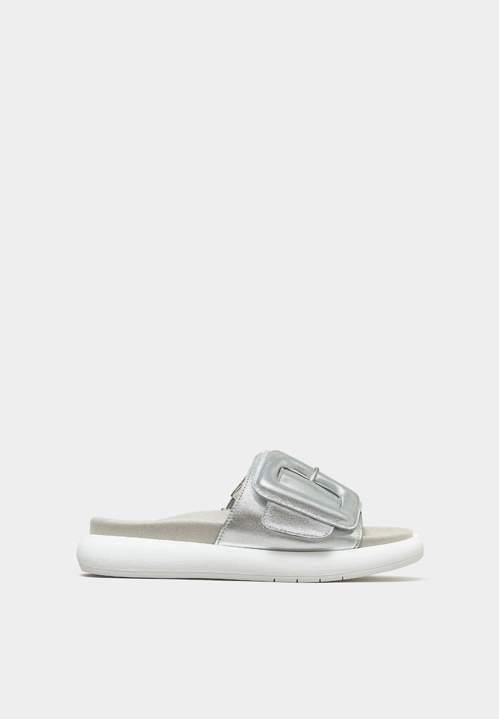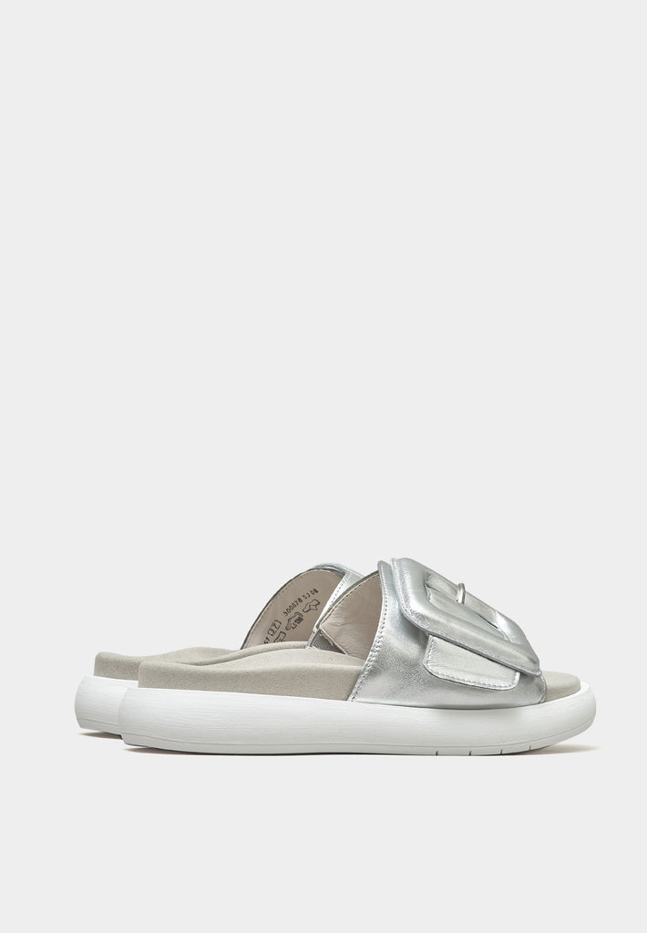 Padded Buckle Sandals 43-751 Shiny Silver