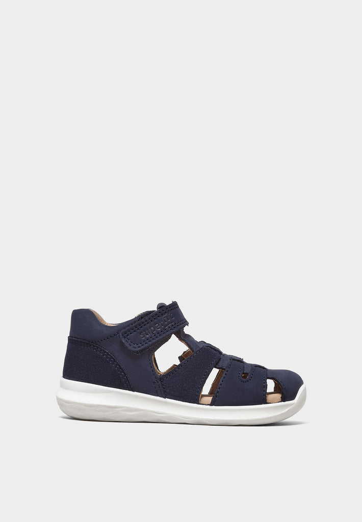 For parents who prioritize both comfort and style, the Bumblebee 392 Blue Nubuck sandals by Superfit are a top choice for active kids. Crafted from premium navy blue nubuck, these sporty sandals boast a supportive heel cup with padded collar and adjustable velcro strap for a secure fit. The white sole is both durable and flexible, perfect for running around on any surface. With their superior blend of practicality and fashion-forward design, the Bumblebee 392 will become your child's go-to footwear all season long.