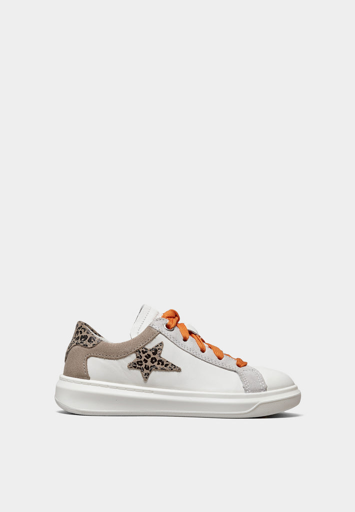 Transform your little fashionista into a trendsetter with Cosmo by Superfit! These sneakers are the ultimate must-have for any girl who loves to stay ahead of the game. The striking mix of white leather and light gray suede, coupled with bold orange laces makes these kicks impossible to ignore. And let's not forget about the fierce leopard print star logo and matching heel cuff that will dazzle everyone around them!With Cosmo, your trendy little girl won't just look stylish but feel ultra-comfy too thanks to its high-quality materials and superior craftsmanship. These sneakers are perfect for everything from playdates to dance class, making them the go-to footwear no matter what adventure awaits.So why settle for just any mundane sneakers when you can unleash some excitement into their wardrobe? Get ready to see heads turn with Cosmo by Superfit - guaranteed to make your kiddo stand out from the crowd in all the best ways!