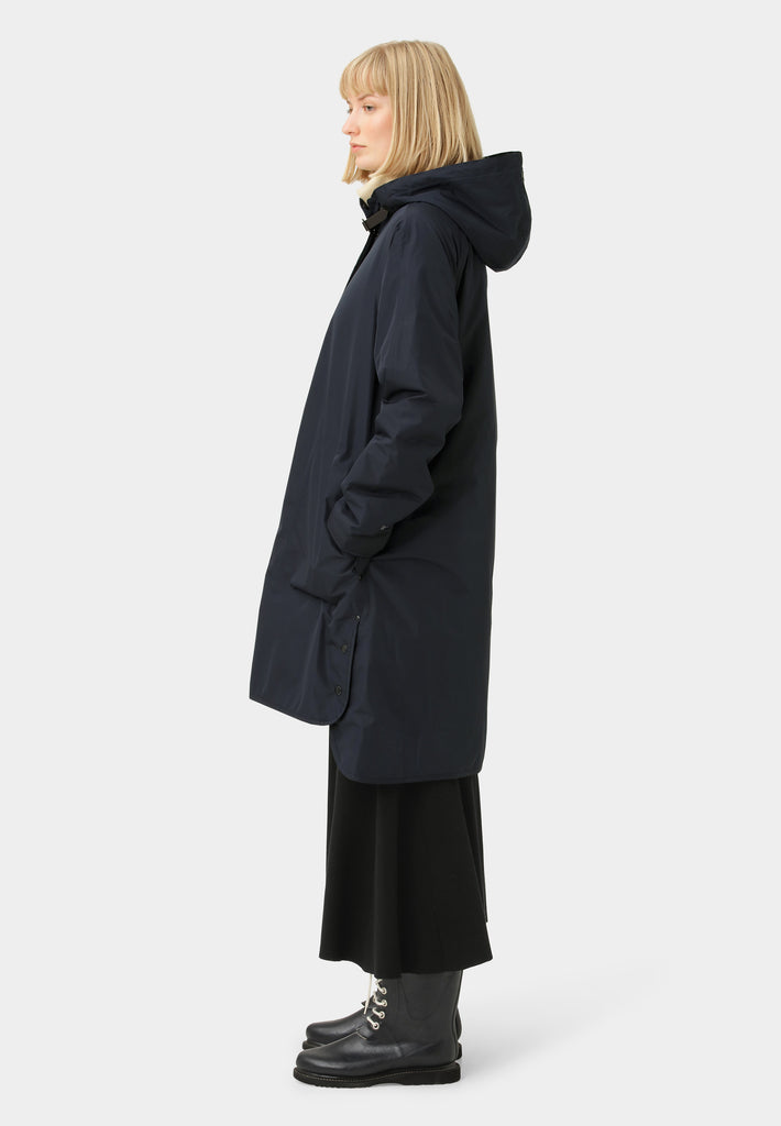 Enhance your outdoor wardrobe with the Rain 200 by Ilse Jacobsen in Dark Indigo—a garment that elevates your sophisticated palette while advocating for an eco-conscious sartorial choice, throughout all your adventures.