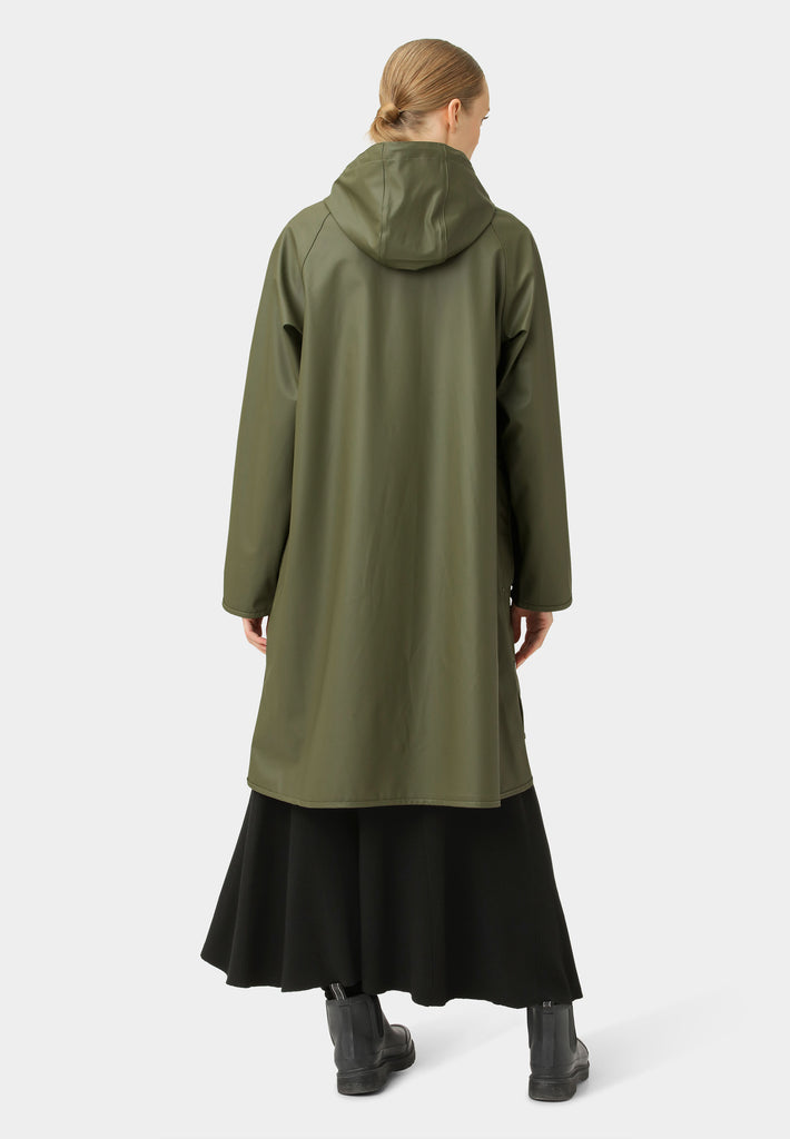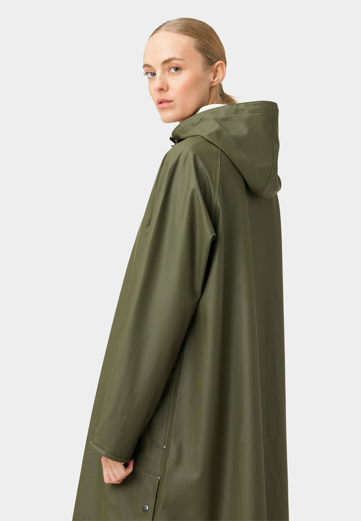Discover elegance and practicality melded into one with the Rain 71 by Ilse Jacobsen. Crafted in Army Green for the fashion-savvy urbanite and the adventurous soul, this is not just a raincoat – it is a statement of style, even on the dreariest of rainy days.
