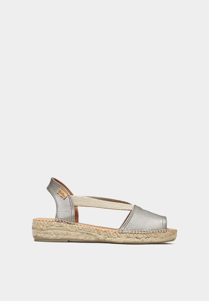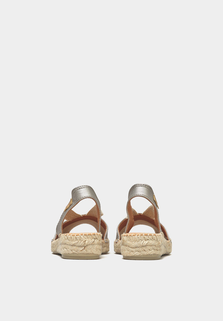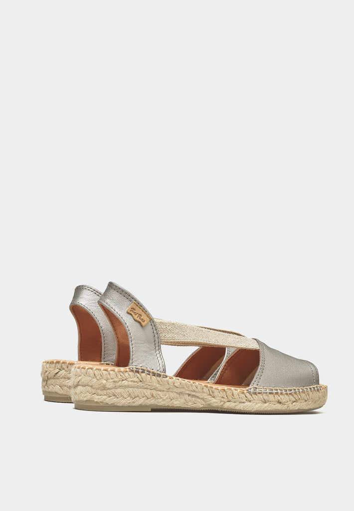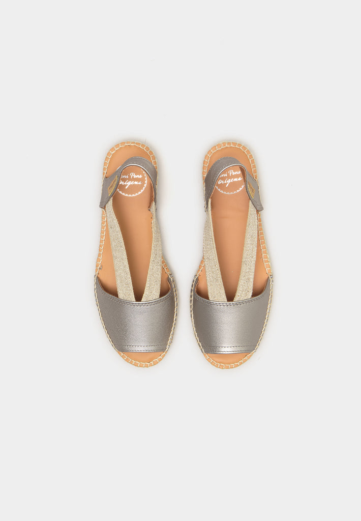 - Premium Pewter Metallic Nappa Leather Upper: The Etna espadrilles boast a luxurious metallic nappa leather upper, providing both supreme comfort and a sophisticated gleam that catches the eye.