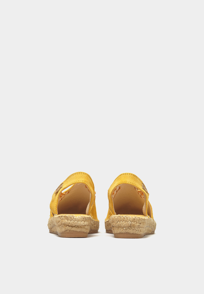- Rich Ochre Suede Upper: Envelop your feet in the warmth of the Nuria espadrille's rich ocre suede. The natural, earthy tone is reminiscent of golden-hour walks in the wilderness, offering an understated but captivating charm to your daily ensemble.