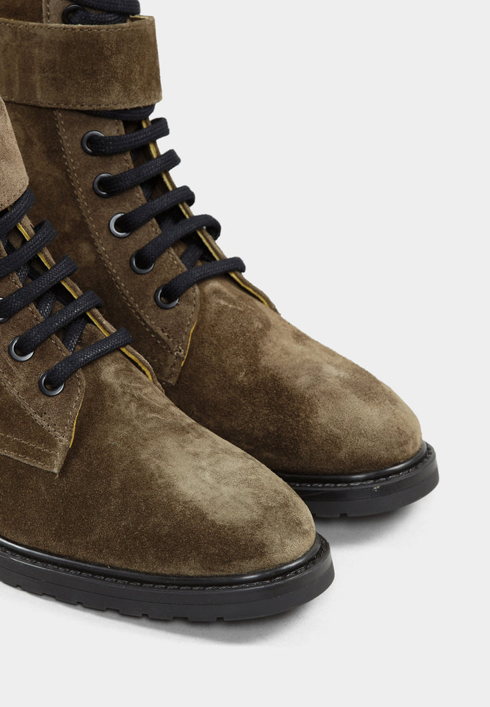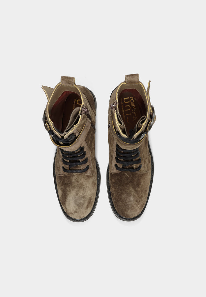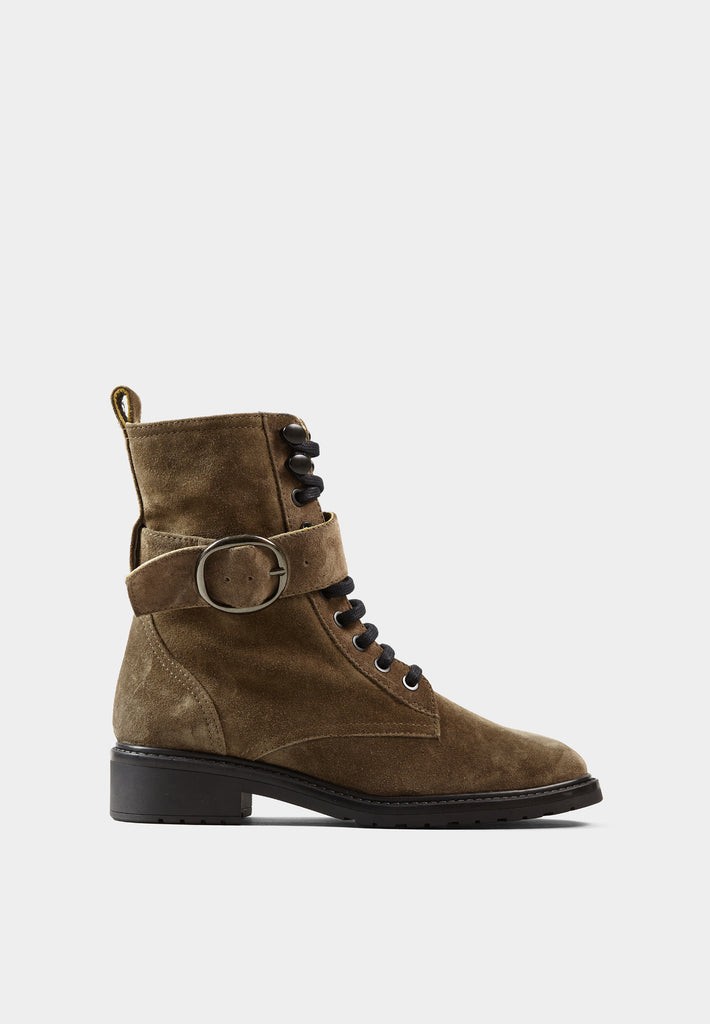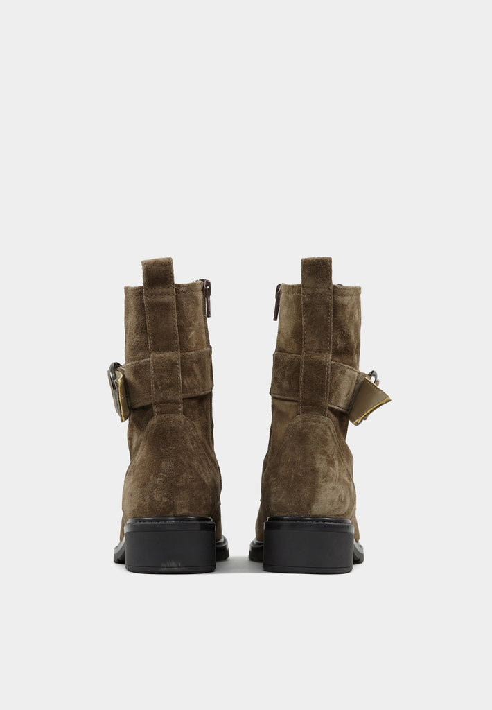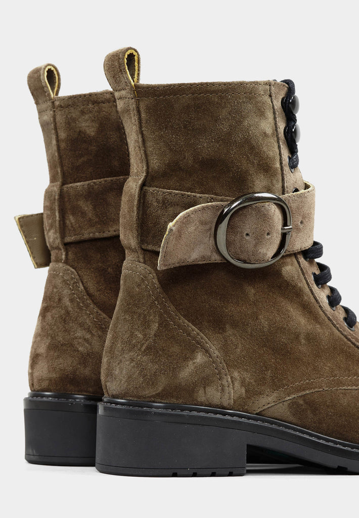 Edecan Taupe Suede Buckle Ankle Boots