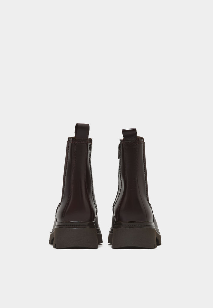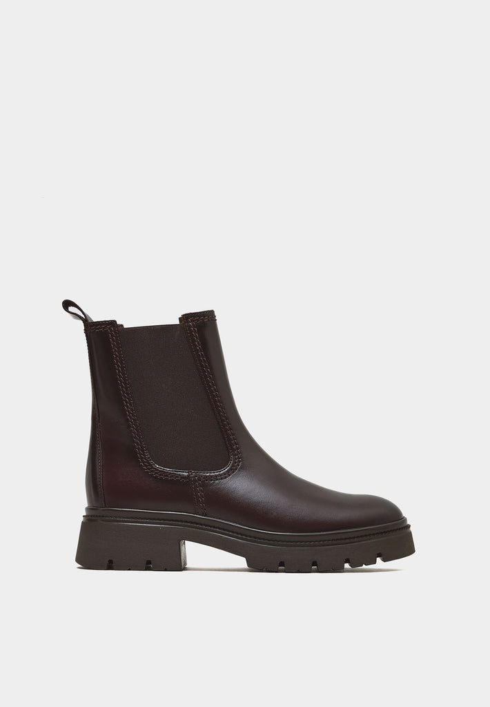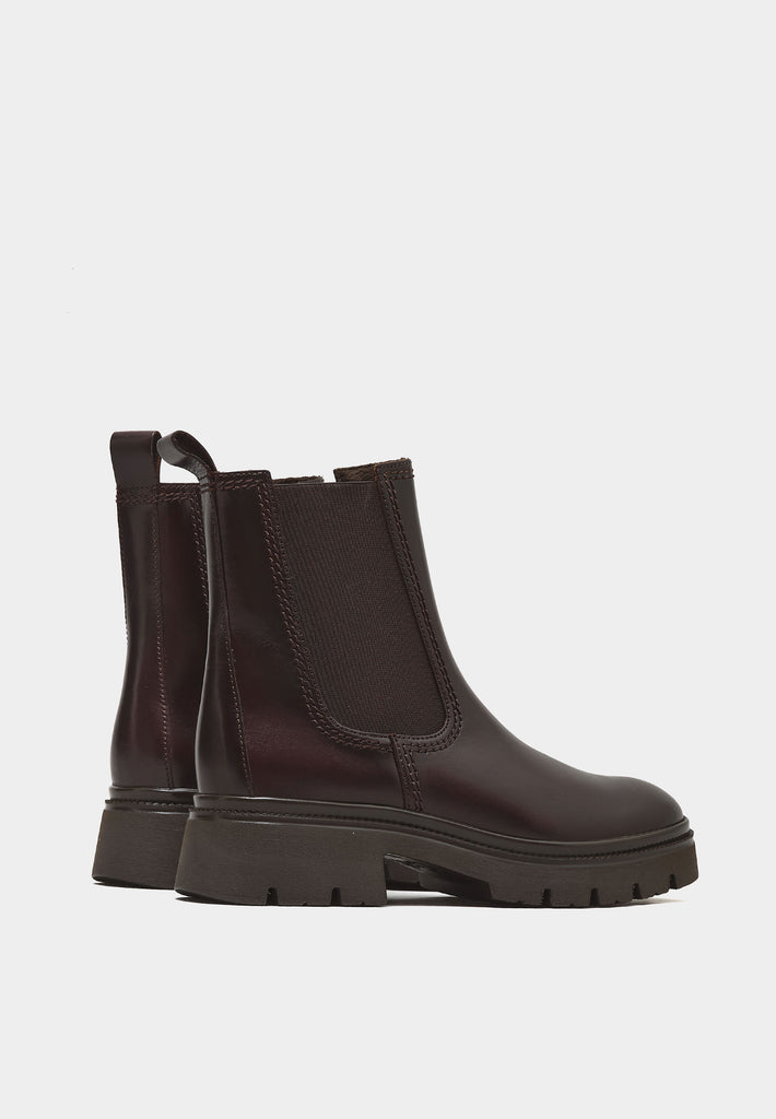 Designed for comfort and ease, it features a convenient side zip closure and elastic gusset for effortless wear, while the heel pull ensures a snug fit. The chunky brown rubber sole not only enhances durability but also adds an edgy flair, effortlessly complementing denim or a chic dress. Whether you're grabbing coffee or enjoying a leisurely stroll, these boots will keep you looking polished and feeling at ease.