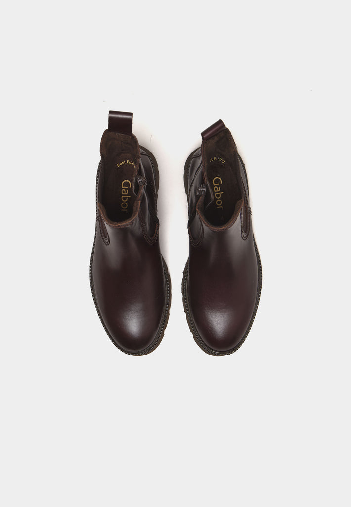 Introducing the 71-850 by Gabor in a shiny chestnut brown—your ultimate companion for any smart casual occasion. Crafted from smooth chestnut leather, this Chunky Chelsea Boot blends luxury with versatility, making it an essential addition to any wardrobe. The rich chestnut hue, with its deep, almost oxblood undertones, strikes a perfect balance between sophistication and style.
