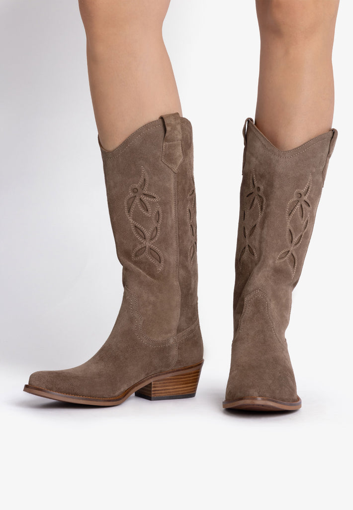 Jasmine Cowboy Boot Sesame Suede