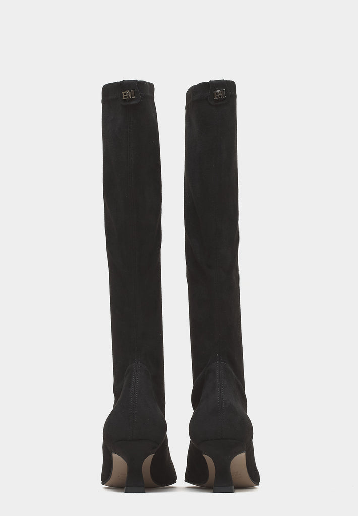 Sophistication meets versatility with the Merida 28364 knee-high boots from Pedro Miralles. Designed with dynamic, stylish women in mind, these elegant black stretch suede boots are a must-have in any wardrobe. Whether you're navigating a busy workday or stepping into an evening soirée, these boots effortlessly adapt to your lifestyle.