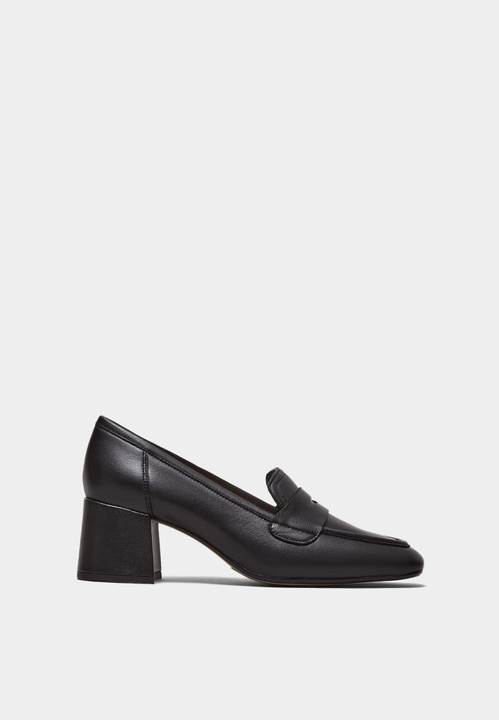 Mendo Block Heel Loafer Black Soft Nappa Leather